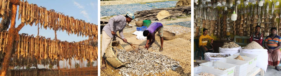 Another location at Kuakata where tourists can go is Shutki Polli. It is 4 kilometres to the west of Kuakata beach. Shutki Polli is a stop on the route to Lebur Bon/Lebur Chor. One can learn how to create dry fish from that location (shutki). He will witness the entire drying-fish process. From the sea, fishermen catch a variety of species. Some of the fish is sold fresh, and the remaining fish is used to manufacture dried fish. Various types of fish are processed here. Shutki fish/dry fish, which is produced from Shutki Polli, is distributed throughout Bangladesh and exported to numerous nations.