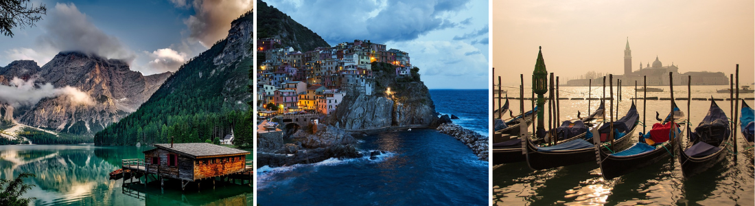 পৃথিবী-বিখ্যাত বড় বড় সব ভবন ইতালিতে দেখা যায়। যেমনঃ- রোমে গেলে কোলাসিয়ামগুলো দেখতে পাবেন, আবার ফ্লোরেন্সে গেলে রেঁনেসার সময়কার আর্ট করা ভবন ও শিল্পকর্ম দেখা যায়। ইতালির ভেনিসে সারা শহরই পানির উপরে গড়ে উঠেছে, তাই গন্ডোলায় করে প্রিয় মানুষের সাথে শহড়জুড়ে ঘুরে বেড়ানো যায়। আর পাহাড়ের গা বেয়ে গড়ে ওঠা শহর দেখতে হলে টুস্কানি আর সিংকি টেরেতে যেতে পারেন।