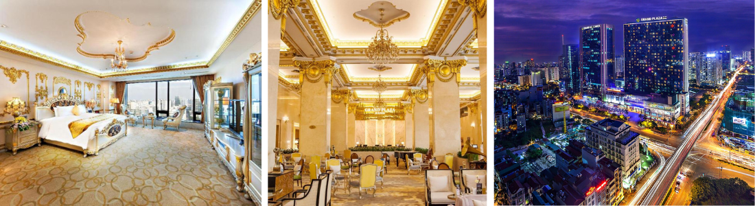 হ্যানয় বিমানবন্দরের ২৩ কিলোমিটার দূরে পাঁচ তারকা হোটেল গ্র্যান্ড প্লাজা হ্যানয় অবস্থিত। এখান থেকে হেঁটে বিখ্যাত কিয়াংমাং হ্যানয় ল্যান্ডমার্ক টাওয়ারে যাওয়া যায়। সারা হোটেল রাজকীয় কার্পেটে মোড়ানো। হেয়ার ড্রাইয়ার ও অন্যান্য সুবিধা সহ কাচের বাথরুম আছে। খাওয়ার জন্য হোটেলে সবসময় রেস্তোরা খোলা পাবেন। এখানে বিকেলের নাস্তা ও বিনোদনের জন্য বিশেষ ব্যবস্থা আছে। ভাড়া কিছুটা বেশি হলেও হোটেলটি পরিবার নিয়ে থাকার জন্য সেরা হবে। যেহেতু এটি একটি পাচ-তারকা হোটেল, তাই ভাড়া প্রায় ১৩,০০০ টাকা যা সিজন ও রুম অনুযায়ী পরিবর্তিত হতে পারে।